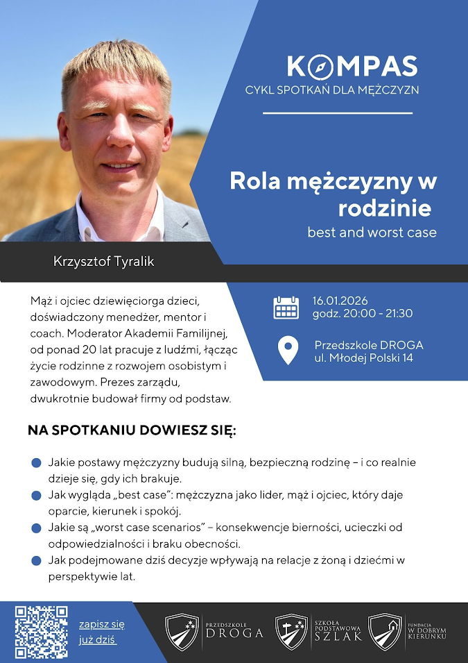 Na spotkaniu dowiesz się: Jakie postawy mężczyzny budują silną, bezpieczną rodzinę - i co realnie dzieje się, gdy ich brakuje. Jak wygląda "best case": mężczyzna jako lider, mąż i ojciec, który daje oparcie, kierunek i spokój. Jakie są "worst case scenarios" - konsekwencje bierności, ucieczki od odpowiedzialności i braku obecności.…