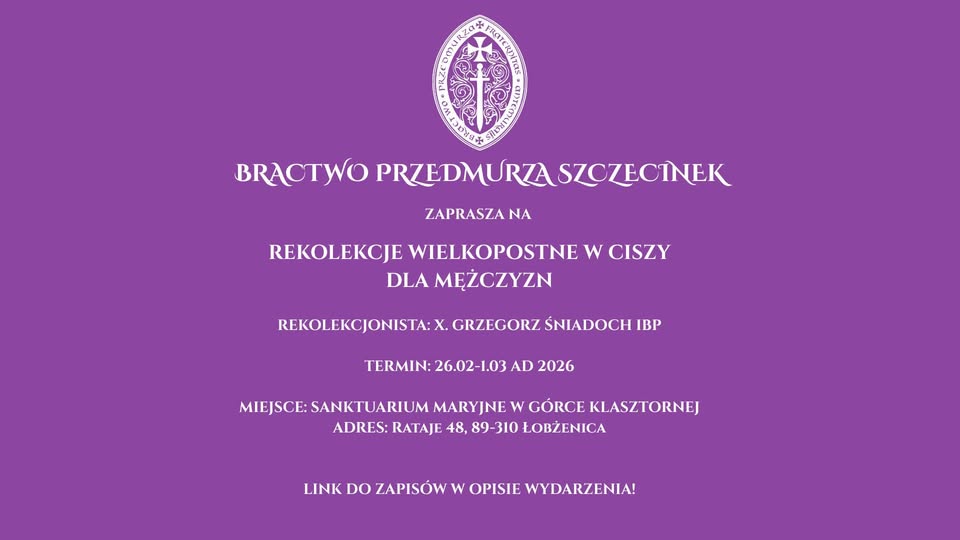 Vivat Iesus! Bractwo Przedmurza Szczecinek zaprasza wszystkich katolickich mężczyzn na Rekolekcje Wielkopostne w ciszy. Termin:…